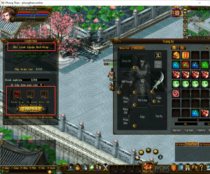 Nhấn vào hình thái cực tại góc trái bên dưới của trang bị cần tiến hành Luyện Hóa Khí Linh.