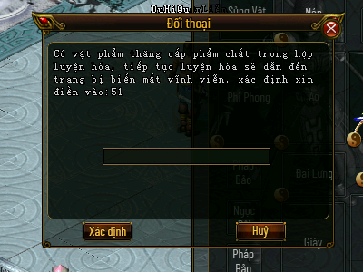 Nếu trang bị đem luyện hoá đã được thăng cấp hoặc các trang bị hiếm, 1 hộp thoại xác nhận sẽ xuất hiện nhằm bảo vệ trang bị quý của anh hùng.