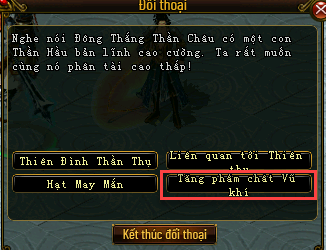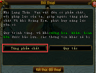 Chọn “Tăng phẩm chất Vũ khí” ở hộp thoại trò chuyện.