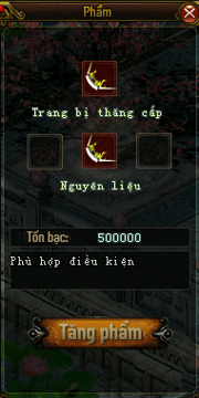 Đặt vũ khí nguồn và nguyên liệu và bấm nút “Tăng phẩm” để bắt đầu.
