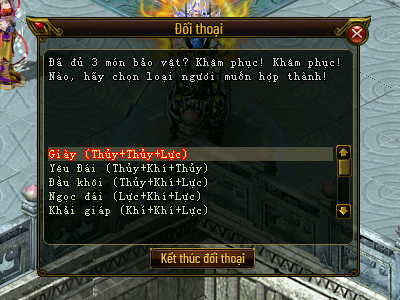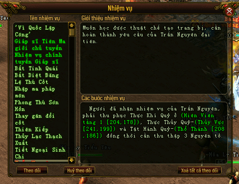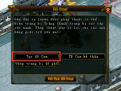 Bước 2: Trong lúc đối thoại với Trấn Nguyên Đại Tiên, kỳ sĩ sẽ nhận được thông tin về vị trí 3 loại quái vật cần tiêu diệt và 3 món bảo bối làm nguyên liệu để chế tạo đồ cam.