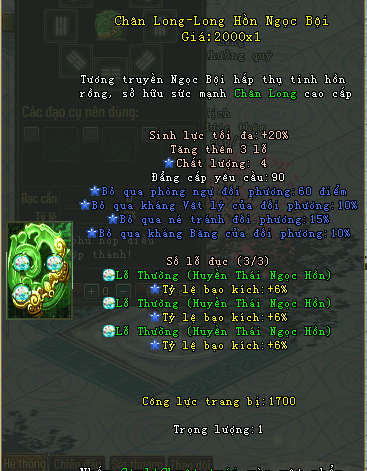 Chân Long - Long Hồn Ngọc Bội là bảo vật huyền thoại, ẩn chứa linh khí cổ long, giúp tăng sức mạnh, phòng thủ và kích hoạt thiên phú đặc biệt cho người sở hữu.