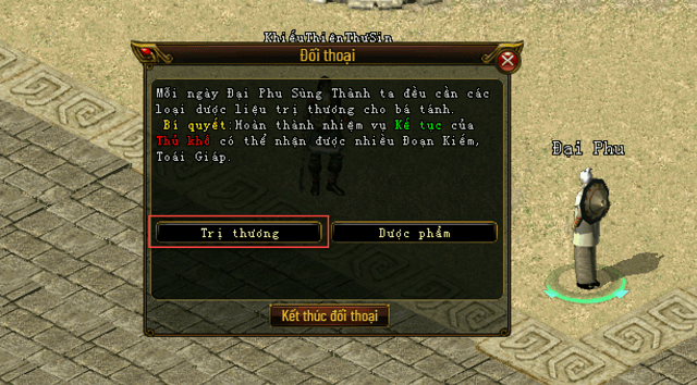 Đối với các anh hùng dưới cấp 10 khi đến gặp Đại Phu sẽ được chữa trị miễn phí, các anh hùng cấp 10 trở lên có thể sử dụng 1 ít bạc để giúp Đại Phu chi trả thuốc chữa thương cho mình.