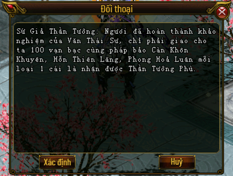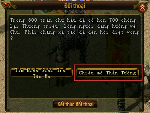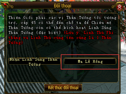 Anh hùng đến gặp Sứ Giả Thần Tướng (193,197) tại Diêu Trì để nhận nhiệm vụ chiêu mộ thần tướng Ma Lễ Hồng.