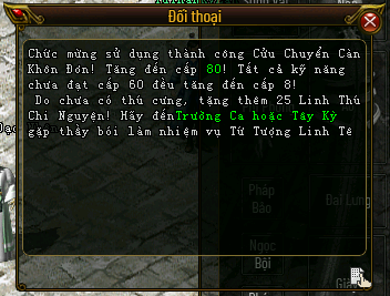 Sử dụng Cửu Chuyển Càn Khôn Đơn thành công còn có giúp nhanh chóng thăng cấp kỹ năng dưới cấp 60 lên cấp 80.
