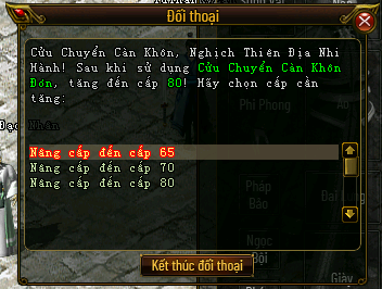 Khi sử dụng Cửu Chuyển Càn Khôn Đơn anh hùng có thể lựa chọn đẳng cấp mình mong muốn.