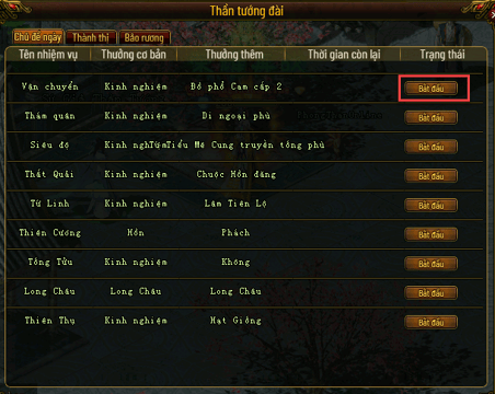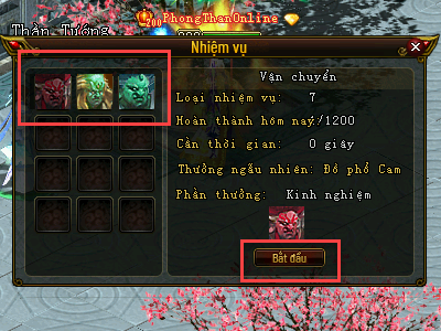 Lựa chọn nhiệm vụ để Thần Tướng thực hiện trong danh sách và nhấn “Bắt Đầu”.