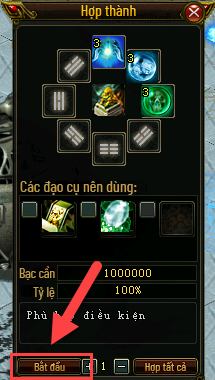 Bước 3: Đặt Pháp Bảo Chí Tôn và các nguyên liệu cần thiết cho quá trình thằng cấp.