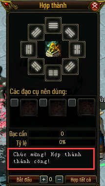 Cấp độ càng cao tỷ lệ thành công càng thấp, để đảm bảo không bị giảm cấp cường hóa anh hùng nên sử dụng thêm Chí Tôn Bảo Hộ Phù.