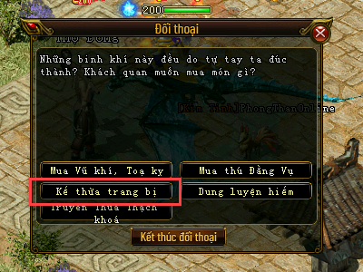 Lựa chọn “Kế thừa trang bị” trong hộp thoại trò chuyện.