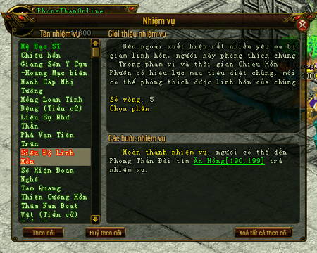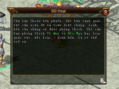 Đối thoại với Ân Hồng để nhận được yêu cầu số lượng loại quái vật cần siêu độ và bùa Chiêu Hồn Phướn.