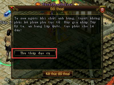 Anh hùng hãy tới gặp Tân Miễn (190,190) tại Tây Kỳ để nhận nhiệm vụ Thu Thập Đạo Cụ.