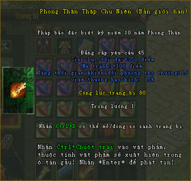 Vũ khí Truyền Thuyết cấp 95 | Không giới hạn |