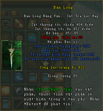 Vũ khí Truyền Thuyết cấp 85 | Không giới hạn |
